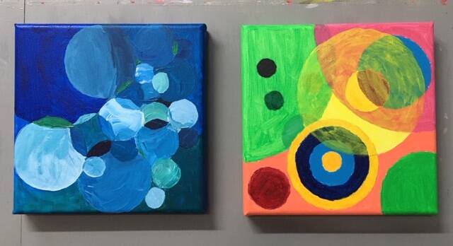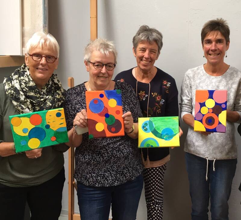 Maak een klein schilderij met grote vormen en ervaar hoe het is om met acrylverf te werken.